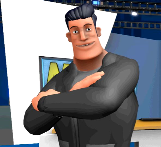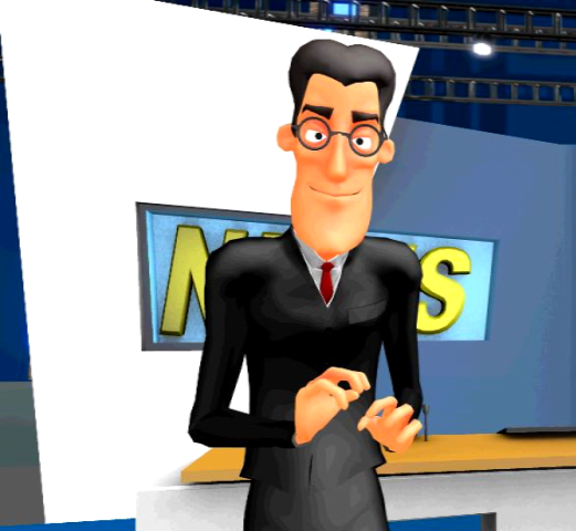 An overly confident news anchor with a short temper and a dim wit. With little to no “on air filter” and a habit of addressing the producer directly during live broadcasts, you could say that Bruce is highly blooper prone. With a hard time staying on track during his reports, Bruce is rarely if ever a reliable source of information.