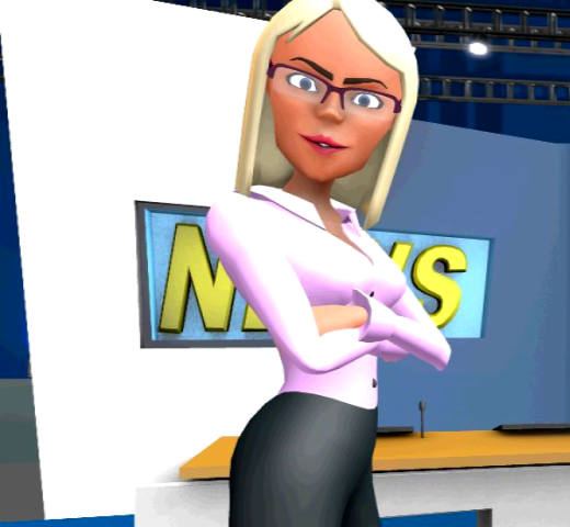 More serious then Bruce, Wendy appears in the 4th episode as a more focused reporter. She is comfortable on air, even when things go wrong. She has the ability to not allow the mistakes of other reporters effect her. She is straight to the point and professional.